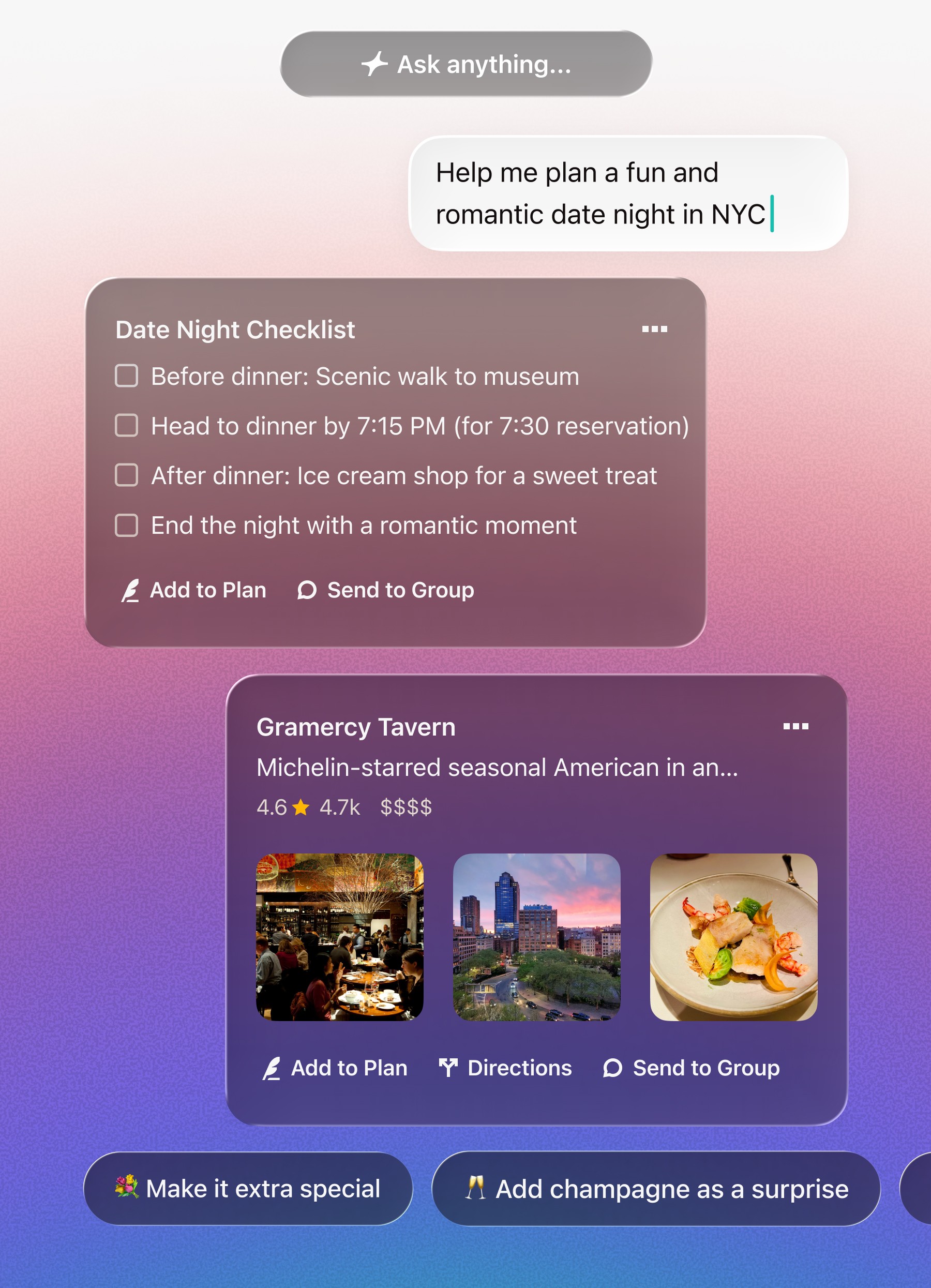 Build on your ideas with AI. Get personalized suggestions. Add to your plan to get organized for action.